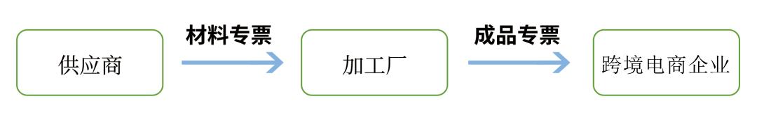 跨境电商企业联系好原材料供应商后,以工厂名义采购,供应商开票给工厂。工厂生产完成后,把加工费和原材料的合计金额一并开具成品发票给跨境电商企业。