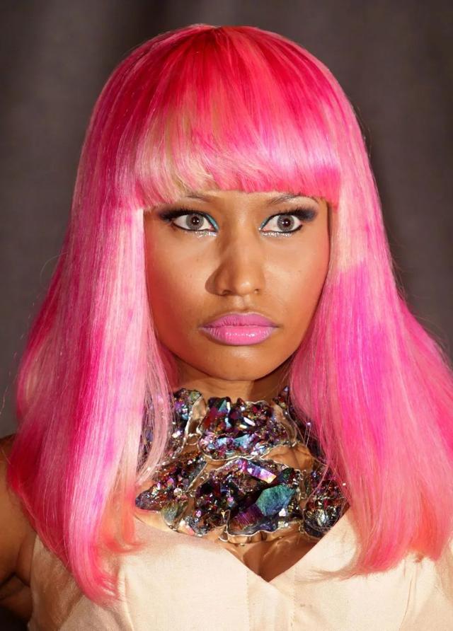 而戴着一顶粉色的假发,则是模仿Nicki Minaj在首张专辑《Pink Friday》里的造型。