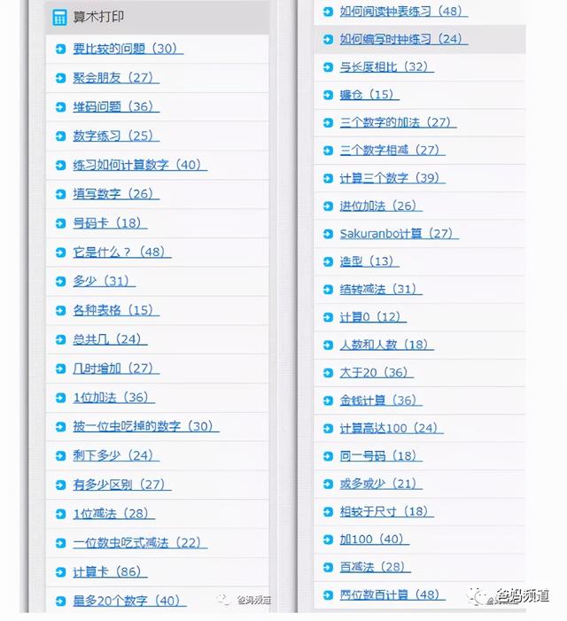 有比较大小,数字,计算,多少,加减,时钟,进位等等, 从学龄前到小学阶段的都有。