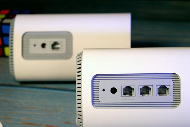 360全屋路由母路由背后部装有3个千兆网口(支持内外网接入盲插),1个DC供电孔,1个R复位孔。子路由只有1个千兆网口,1个DC供电孔,1个R复位孔。遗憾的是在360全屋路由上依然没有配备USB口。