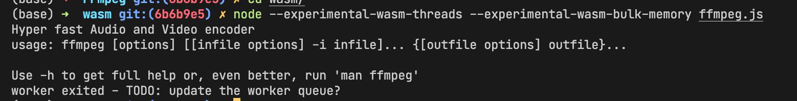 node --experimental-wasm-threads --experimental-wasm-bulk-memory ffmpeg.js