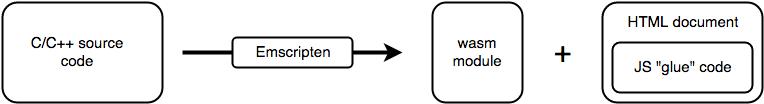 WasmFiddle[1]WasmFiddle [2]WasmExplorer[3]但是这些工具都缺乏 EMScripten 的工具链和优化操作,EMScripten 的具体运行过程如下: